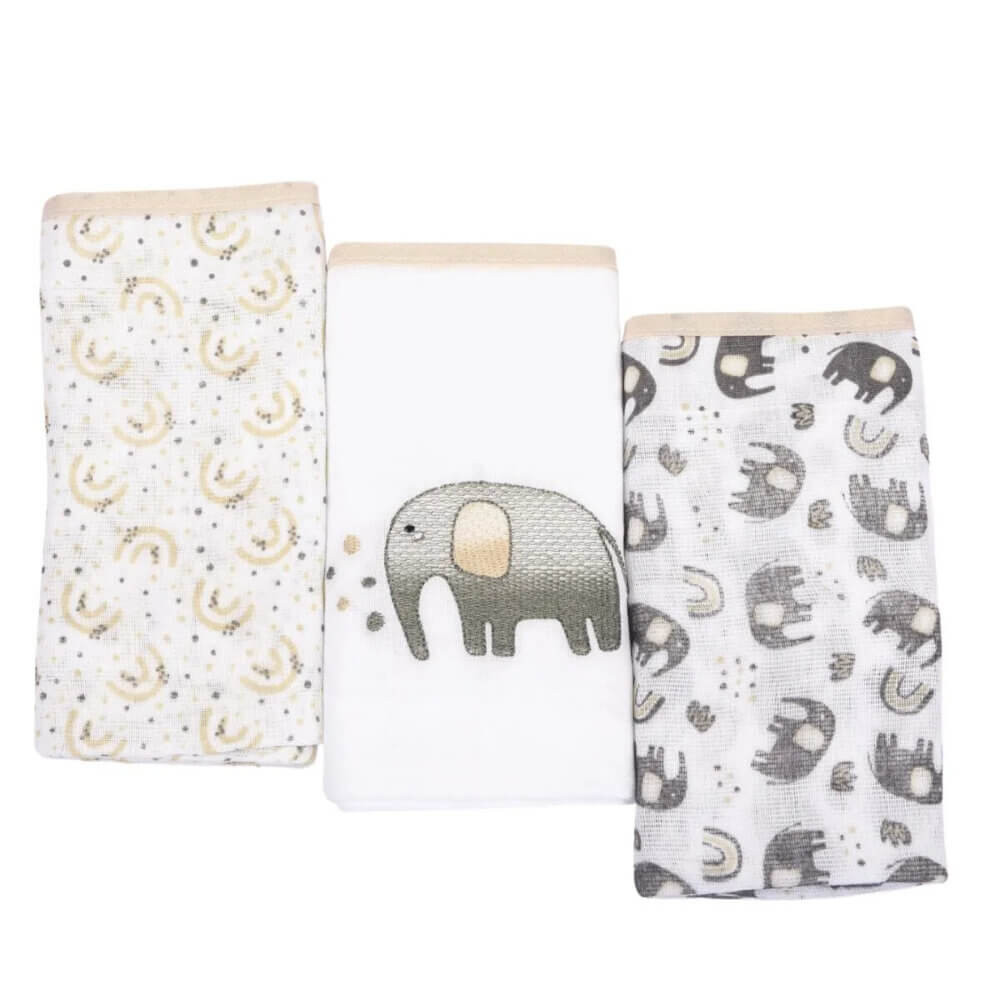 Kit Fralda De Pano Minasrey Composê Elefante - 03 Peças