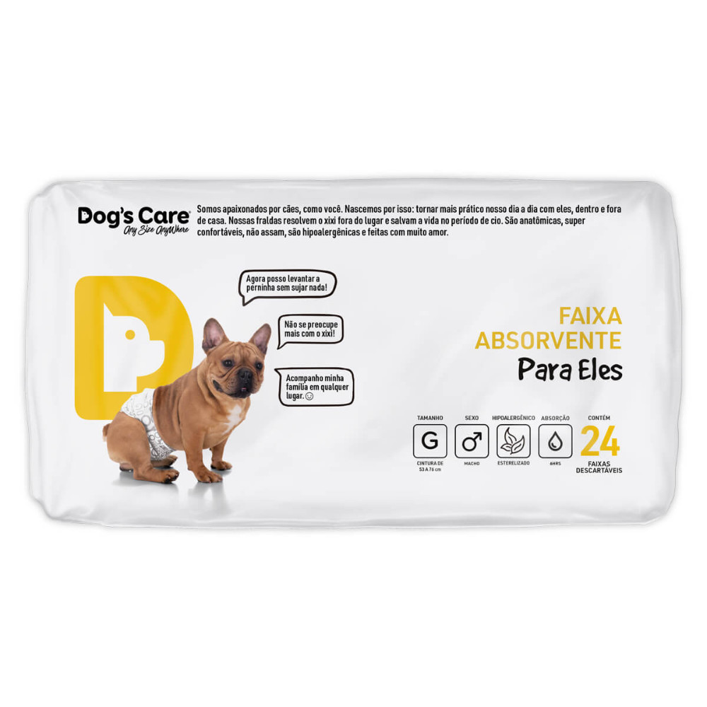 Kit Fralda Higiênica Pet p/ Cães Macho Dogs Care Tam G 72 Un