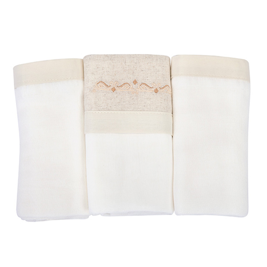 Kit Fralda Minasrey Loupiot Bordado Ramos Bege - 3 Peças