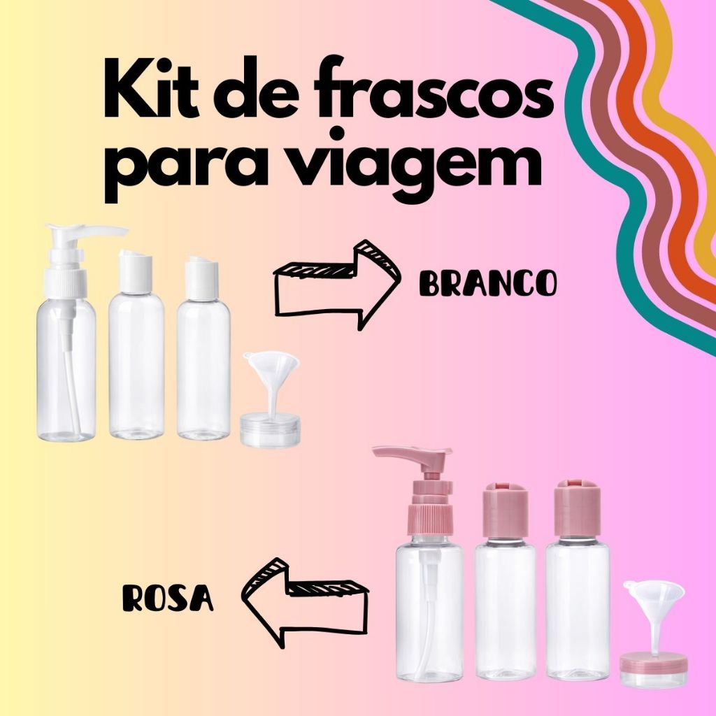 Kit Frascos de Viagem para Shampoo, Creme, Sabonete, Cosméticos + Necessaire