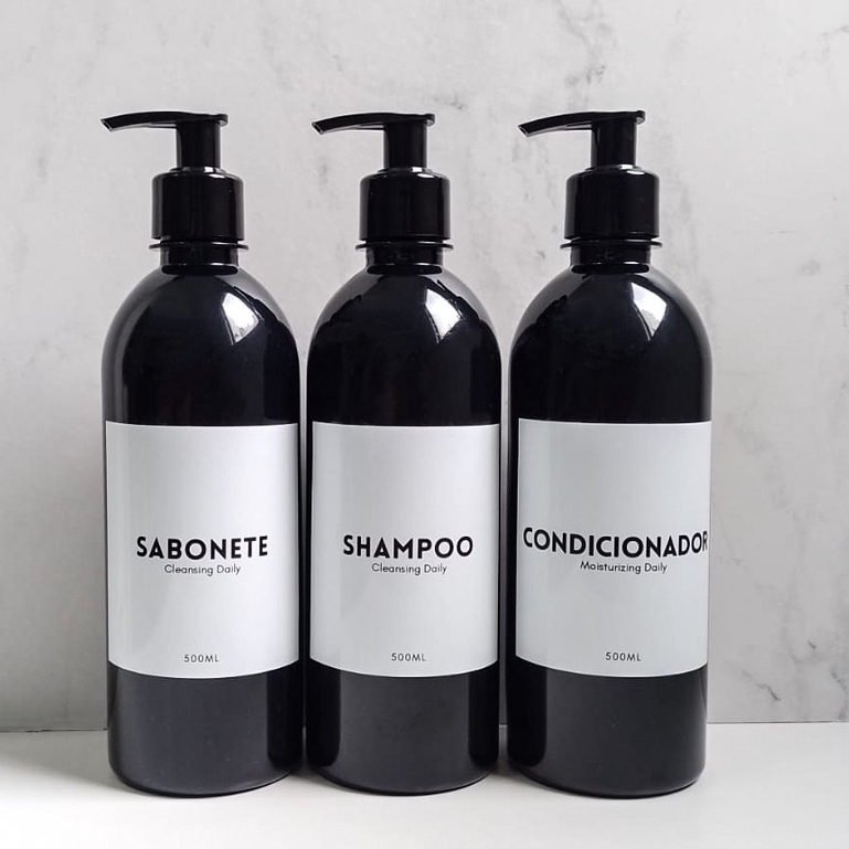 Kit Frascos Pretos 3 Peças Shampoo Condicionador Sabonete 500ml