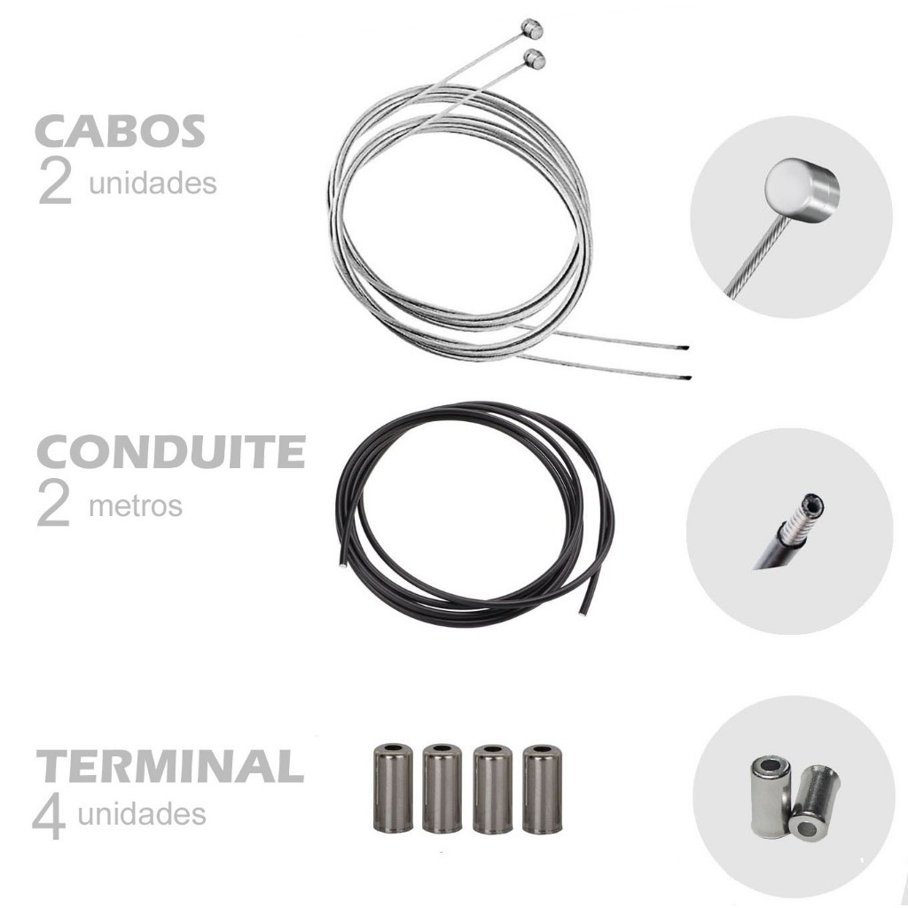 Conteudo da Embalagem: 01 Par Cubos Aço P/ Catraca de Rosca P/ Freios A disco 01 Kit Freio A Disco Mecânico Com Pastilhas E Parafusos - Absolute -ou gts- ou paco o lovit ( de acordo com o estoque) 01 Par Adaptador Pinça Dian/Traseiro 01 Par Manetes Aluminio 02 Cabos de Aço Para Freios 02 Metros de Conduite 04 Terminal de Conduites Aço Descrição *******Adaptador para Freio à Disco Pinça Quadro para Bicicleta****** ATENÇÃO: como se trata de uma adaptação não garantimos a total eficácia do produto. Sugestão: alguns clientes solda o suporte no quadro para garantir uma melhor frenagem. - só compre se realmente estiver de acordo. Adaptador pinça traseira para tubos do quadro até 22,2mm. e 28,6mm Peso: 58 g. Material: Ferro. Cor: Preto. Freio disc 160mm caliper preto diantiro e traseiro Composição das Pinças: Aluminio Peso: 678 g Embalagem com: 1 jogo 2 Disco 160mm 2 Pinças com Pastilhas 12 Parafusos para fixar disco 4 Parafusos para fixar pinça Cubos Aço 36 Furos Marca- PACO cubo aço para freio a disco preto com esfera traseiro com espaçador 36furos( new ) tamanho eixo: eixo dianteiro 3/8 x 100 x 108mm eixo traseiro 3/8 x 135 x 145mm com espaçador caixa dianteira e traseira: 29.2 x 10.5mm colar dianteiro e traseiro: 1/4 x 7 esferas furação do raio: 36 furos para raio até 2.0mm sistema: para uso de roda livre múltipla marcha 6, 7 marchas suporte para disco de freio: sim composição: aço acabamento: preto
