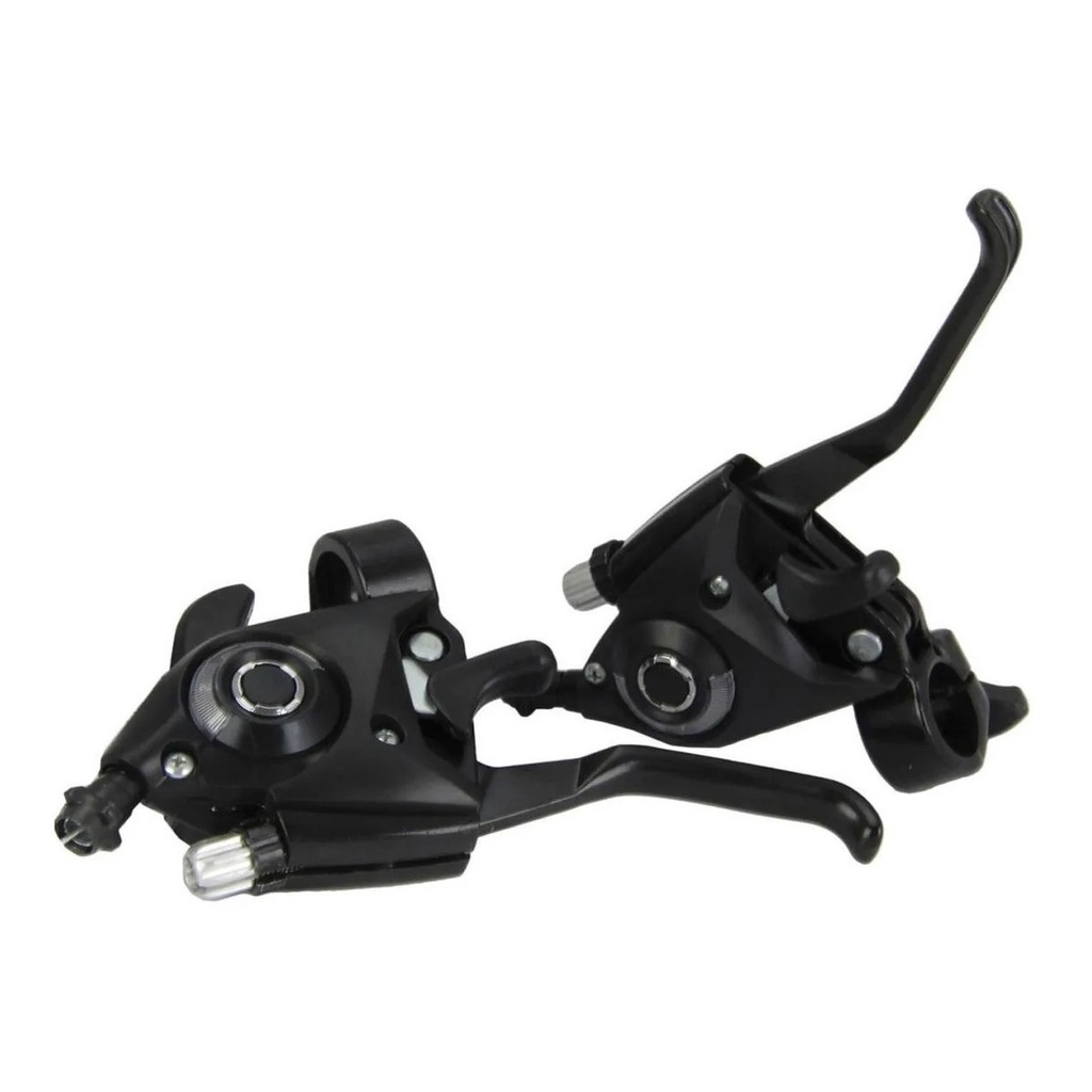 Freio a disco mecânico com alta precisão e durabilidade. - Freio a disco de Aço dianteiro e traseiro 02 Pinças de freio; 02 Disco 160mm; 04 parafusos Allen de fixação da pinça; 12 parafusos Allen p/ fixar disco; 01 Cabo dianteiro e Traseiro; 01 Conduíte (Capa de Cabo) dianteiro e Traseiro; Acionamento: mecânico; Composição: pinça de alumínio e disco 160mm de aço; Marca: PACO, GTS ( disponibilidade em estoque ) - Cubo Aço para freio a disco preto com esfera (par) Cubos com rolar de esferas; Blocagem dianteira e traseira; Furação do raio: 36 furos para raio até 2.0mm (Raio Fino); Sistema: para uso de roda livre múltipla marcha 6, 7 marchas ; Suporte para disco de freio: sim ; Marca: Paco, Gts ( disponibilidade em estoque ) - Alavanca Passador de Cambio Rapid Fire 21m com maçaneta de freio em alumínio; Modelo: 21 Velocidades v-fire; ComposiÇão: alumínio, aço, pvc; Marca: Gta. Yamada