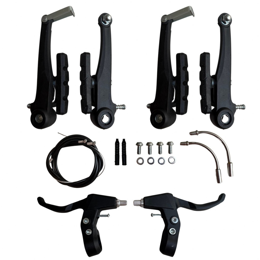Kit Freio V-Brake de Nylon Preto para Bicicleta Bike Com Manete e Cabos Completo