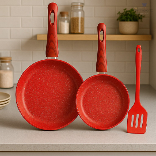 FICHA TÉCNICA: ✔️ Revestimento: Nano-Cerâmica de alta performance, ultra resistente ✔️ Estilo: Granito moderno com cabo soft-touch 🌲 ✔️ Material: Nano-cerâmica + ferro reforçado com base de indução COMPATIBILIDADE TOTAL: ✅ Fogão a gás ✅ Fogão elétrico ✅ Fogão vitrocerâmico ✅ Compatível com fogões por indução DESIGN INTELIGENTE E FUNCIONAL: • Antiaderente de verdade: não gruda nem com pouco óleo • 2 camadas de cerâmica + camada de proteção térmica avançada • Base tripla com fundo de indução: mais estabilidade e economia de gás/luz • Cabo ergonômico soft-touch: confortável, antitérmico e seguro • Livre de PFOA: cozinha sem toxinas, ideal para refeições saudáveis • Aquecimento rápido e uniforme: menos tempo no fogão • Fácil de limpar: basta um pano ou esponja macia • Ideal para grelhar, refogar, fritar ou preparar receitas leves ============== IMPORTANTE =============== Lave sua panela de cerâmica com detergente neutro. Despeje óleo dentro da panela e espalhe bem com um papel toalha. Leve ao fogo alto por 1 ou 2 minutos. Em seguida, desligue o fogo e espere a panela esfriar. Lave novamente para remover o excesso de óleo. Limpe o utensílio com um papel ou pano de prato. =========================================== ESPECIFICAÇÕES: Material: Alumínio, Baquelite e revestimento cerâmico. Capacidade: 1,5 litros (24cm) e 850ml (20cm) Indicada para fogões: Elétrico, Indução, Gás e Vitrocerâmico Dimensões (L x A x C): 24 x 4,5 x 43,5 cm Diâmetro: 24cm e 20cm =========================================== ACOMPANHA: • 1 Frigideira 24 cm com revestimento cerâmico antiaderente (uso diário, carnes, ovos, legumes) • 1 Frigideira 20 cm com revestimento cerâmico antiaderente (ideal para porções individuais e frituras rápidas) • 1 Espátula de silicone resistente (protege o revestimento antiaderente)