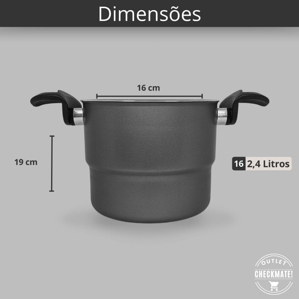 Kit Frigideira Grande Alta 24 cm Cuscuzeiro 16 cm e Caneco 14 cm Antiaderente Com 5 Camadas de Teflon Cor Preto Grafite