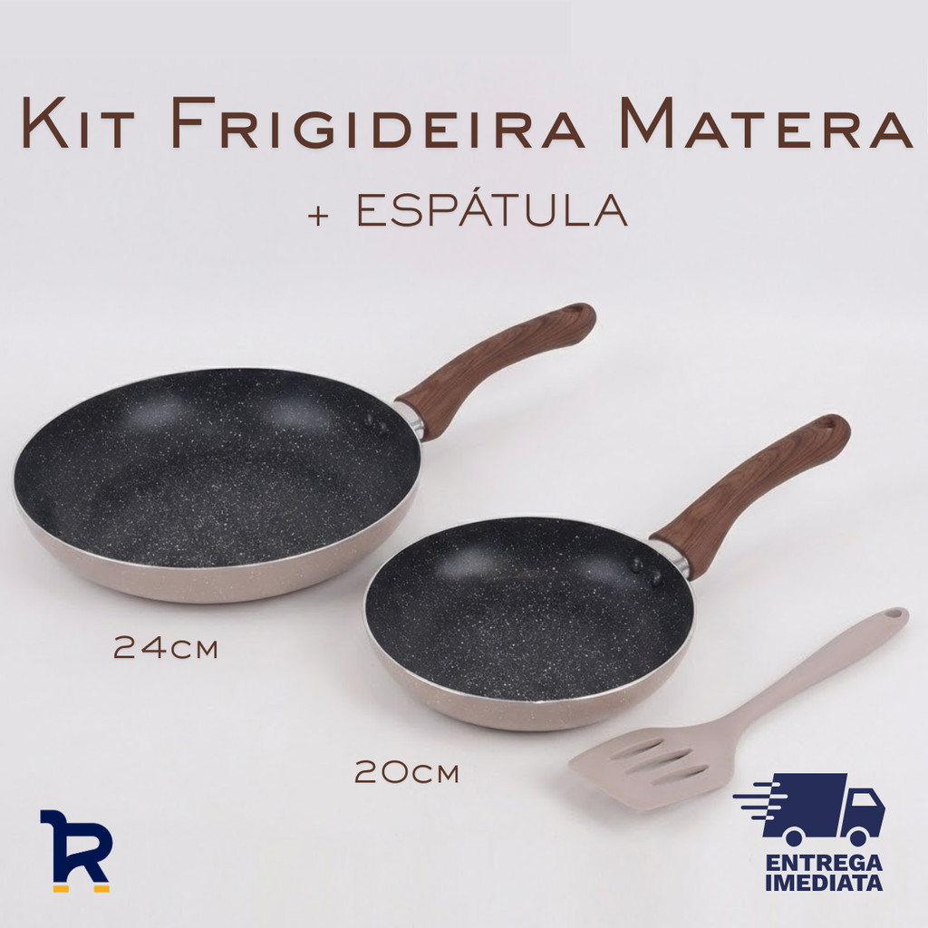 Kit Frigideiras Indução Revestimento Cerâmica Antiaderente 3 peças - 24cm, 20cm e Espátula