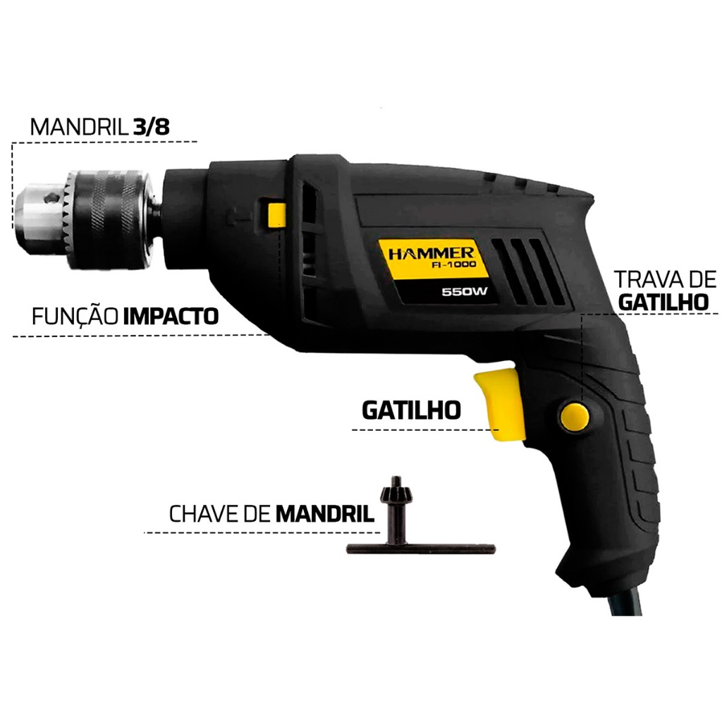 | Kit Furadeira De Impacto Hammer 550W 3/8" 10mm F1000 Com Jogo 46 Pç... este produto | R$ 149,90 | 55% | 5.0/5 | — |
