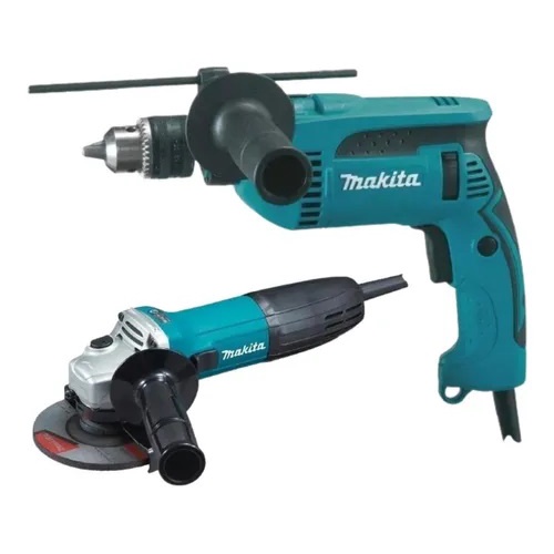 KIT FURADEIRA DE IMPACTO HP1640 E ESMERILHADEIRA GA4530 220V MAKITA Furadeira De Impacto - Hp1640 / 1/2'' / 220v - Makita CARACTERÍSTICAS: Corpo emborrachado e design ergonômico; Velocidade variável; Rotação reversível; Ideal para trabalhos profissionais; Acompanha: Chave do mandril e empunhadura lateral. ESPECIFICAÇÕES TÉCNICAS: Tensão: 220V; Potência: 680W; Rotações por minuto: 0 – 2.800; Impactos por minuto: 0 – 44.800; Capacidades: *Concreto: 16,0mm; *Aço: 13,0mm; *Madeira: 30,0mm; Marca: Makita. + Esmerilhadeira / Lixadeira Prof. Makita - 720w Ga4530 220V PRODUTO NÃO RECOMENDADO PARA LIXAR PAREDE ! PRODUTO PARA DESBASTE E CORTE EM MATERIAIS METÁLICOS. A Esmerilhadeira angular 4.1/2" GA4530 da Makita possui estrutura de pequena circunferência e punho lateral ergonômico para fácil manuseio. Com potente motor de 720 watts e rotação 11.000 rpm a Esmerilhadeira da Makita utiliza disco de 115 mm e acompanha punho lateral e flange. Além de possuir construção em labirinto protegendo o motor e os rolamentos de poeira e resíduos, conta com motor de alta qualidade com elevada resistência ao calor, a caixa de engrenagens pequena proporciona fácil manuseio e elevada manobrabilidade, seu estator é protegido com verniz especial que impede a entrada de poeira. Ideal para profissionais da área automotiva, metal mecânica! CARACTERÍSTICAS: Dupla isolação. Gatilho deslizante. ESPECIFICAÇÕES: Potência: 720W; Tensão: 220V; Diâmetro do Disco: 115,0mm; Rotações por min.: 11.000rpm; Dimensões (C x L x A): 266,0 x 128,0 x 103,0mm; Emissão de vibrações: 7.5 m/s²; Incerteza K: 1.5m/s². ITENS QUE ACOMPANHAM: Flange, chave de pino e punho lateral.