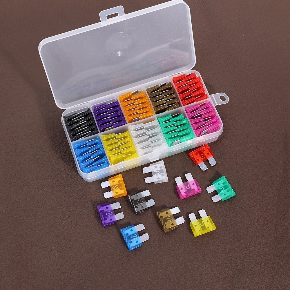 Kit Fusíveis Automóvel Tipo faca 100pcs De Tamanho Médio Mini 2A 3A 5A 7.5A 10A 15A 20A 25A 30A 35A