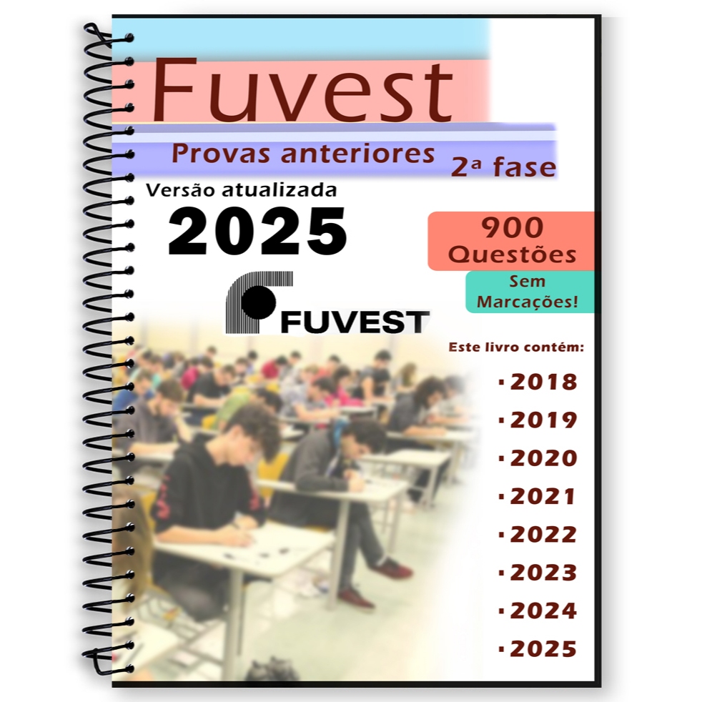 Kit contém as provas da Fuvest 1ª fase e 2ª fase - versão atualizada 2025 Possui um total de 23 anos de provas do vestibular da Fuvest! Fuvest 1ª fase: 2011; 2012; 2013; 2014; 2015; 2016 2017; 2018; 2019; 2020; 2021; 2022; 2023; 2024; 2025 Fuvest 2ª fase: 2018; 2019; 2020; 2021; 2022; 2023; 2024, 2025 Este material é indicado para quem deseja praticar por questões do próprio vestibular, realizando simulados ao longo do ano. A resolução de questões é uma estratégia que tem por finalidade proporcionar adaptação ao estilo da prova, melhorar tempo de resposta e aumentar a resistência e confiança no dia da prova oficial. Gabarito de todas as provas ao final! -Contém todas as questões. -Gabaritos oficiais de cada ano da Fuvest ao final do material. -Material com proteção frontal e traseira para proteção contra água e outros agentes! Ganhe experiência! Melhore seu tempo de resposta! Ganhe confiança na hora de responder! No caso de dúvidas, fique à vontade para perguntar que responderemos prontamente! Produto postado nos correios em até 24 horas. Envio feito em até 24h após a confirmação da compra!