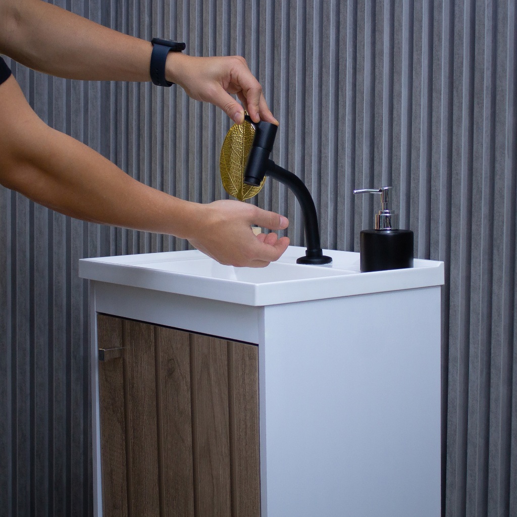 Conjunto Gabinete Veneto RIVERZZA Transforme seu banheiro com o Conjunto Suspenso Veneto RIVERZZA, um gabinete moderno e funcional, desenvolvido com estrutura em MDF resistente e cuba em BMC, garantindo durabilidade, resistência e acabamento sofisticado. Perfeito para quem busca organização e estilo, o modelo conta com uma porta, espaço interno inteligente e espelheira inclusa, proporcionando praticidade e elegância para o seu ambiente. Destaques do Produto: Acompanha Cuba: Sim (Cor: Branca) Material da Cuba: BMC Material Principal: MDF Material da Porta: MDF Puxador: Externo em plástico Estilo: Moderno Portas: 01 com dobradiça metálica Espelho: Sim Prateleiras: Não Gavetas: Não Pés: Não Rodízios: Não Iluminação: Não Furação para Cuba e Torneira: Sim Tipo de Porta: Bater Tipo de Dobradiça/Corrediça: Metálica Dimensões e Pesos: Gabinete: 40cm x 41cm x 31,5cm | Peso: 8,4 kg | Suporta: 10 kg Cuba: 40cm x 2,5cm x 31,5cm Espelheira: 38cm x 36cm x 1,2cm Furo da torneira: 2,7cm | Furo do ralo: 3,2cm Embalagem (desmontado): 38,3cm x 21,2cm x 46cm | Peso: 8,85 kg Itens Inclusos: 1 Gabinete de Banheiro, 1 Pia, 1 Espelheira e 1 Kit de Montagem Montagem e Manutenção: Kit de montagem incluso (não acompanha parafusos de fixação) Montagem simples, podendo ser feita por uma pessoa sozinha Limpeza prática: pano levemente umedecido Origem e Garantia: Produto Nacional Garantia do fornecedor: 3 meses O Conjunto Veneto RIVERZZA é a escolha ideal para quem busca praticidade, organização e design moderno em um único produto. Renove seu banheiro com estilo e funcionalidade!