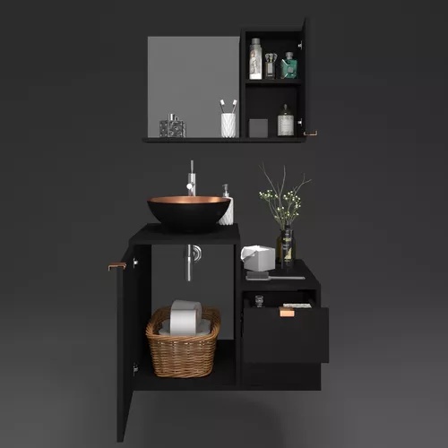 Kit Gabinete Banheiro Armário + cuba + espelheira C/puxador Cobreado