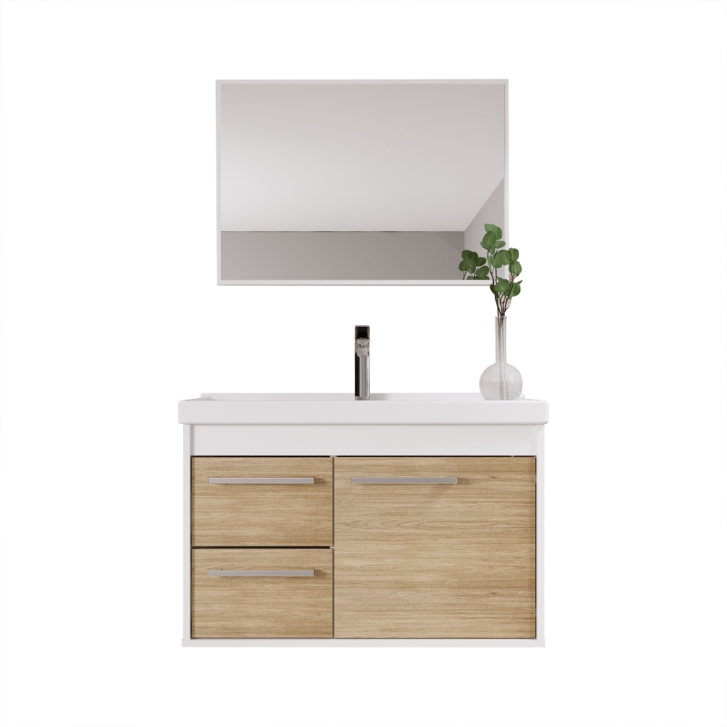 Conjunto Gabinete Potenza RIVERZZA O Conjunto Gabinete Potenza RIVERZZA traz funcionalidade e design moderno para o seu banheiro. Produzido em MDF resistente com cuba em BMC, ele oferece durabilidade e praticidade, além de um visual elegante que transforma o ambiente. Acompanha gabinete, cuba, espelheira e kit de montagem, garantindo uma solução completa para organizar seu espaço. Destaques do produto: Estrutura em MDF de alta qualidade e cuba em BMC Design moderno com porta única e duas gavetas Espelheira inclusa para maior comodidade Furação pronta para cuba e torneira Kit de montagem incluso Dimensões e peso: Gabinete: 31,5cm x 41cm x 63cm | Peso: 15,7 KG Cuba: 31,5cm x 2,5cm x 63cm | Cor: Branca Espelheira: 38cm x 54cm x 1,2cm Embalagem: 40,5cm x 23,5cm x 70,7cm | Peso: 15,7 KG Benefícios: Produto nacional com garantia de 3 meses Montagem simples, pode ser feita por uma pessoa Ideal para quem busca elegância e organização no banheiro Recomendações de uso: Limpar com pano levemente umedecido.