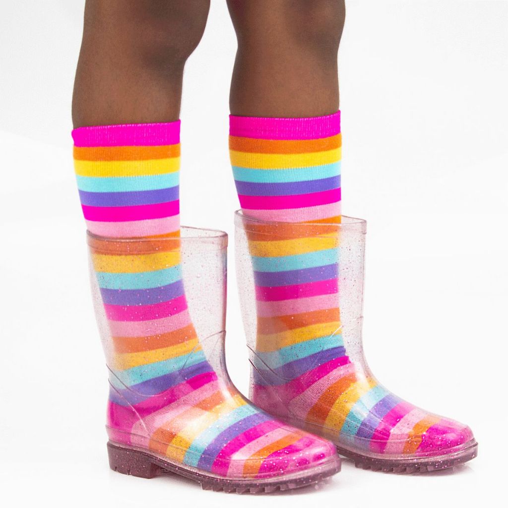 A Galocha Transparente com Glitter da Camin Calçados é cheia de estilo, e que deixa qualquer look super divertido e descolado. Com um design sempre moderno as Galochas dão um toque bem despojado e divertido ao look das crianças. E com os pezinhos protegidos eles vão ficar prontos para curtir o dia com muita segurança, charme e conforto. *ATENÇÃO* PODERA HAVER ALTERAÇÃO NA MEIA, POR FALTA DO MODELO EXATA QUE MOSTRA NAS FOTOS. Tabela de medidas: Calçados com numeração dupla 27/28 17,0 cm 29/30 19,0 cm 31/32 20,5 cm 33/34 21,5 cm ESPECIFICAÇÕES TÉCNICAS Indicado para: Dia a Dia Ocasião: Conforto Material: PVC Composição: Confeccionada em material PVC. Altura do Cano: Cano Médio Material Interno: Palmilha confeccionada em material de qualidade. Solado: PVC Altura do Salto: Baixo Fechamento: Sem fecho Diferencial: Contém meia colorida cano alto Recomendações de Uso: A limpeza do calçado pode ser feita com pano úmido. Não deixar submerso em água e não utilizar nenhuma forma de calor para secar. Guardar em local sem umidade. Garantia do Fabricante: Contra defeitos de fabricação.