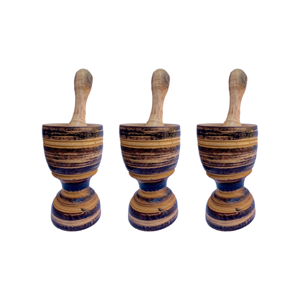 Kit Gamela e Pilão de Madeira 15cm - Utensílios de Cozinha em Madeira Maciça Artesanal