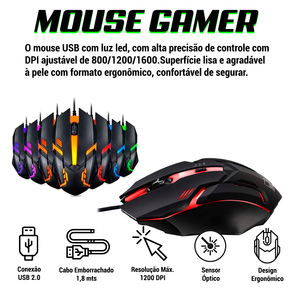 ATENÇÃO COMPATIVEL COM TODOS OS CELULARES ANDROID, ACOMPANHA CABO OTG MICRO E TIPO C!!! Está procurando Kit Mobilador Completo Com 7 Peças, qualidade garantida para suas longas horas de jogatina? ENTÃO VOCÊ ACABA DE ENCONTRAR ELE! Itens Incluso: 01 Teclado Usb Preto 01 Mouse Gamer Rgb 01 Mouse Pad Speed Estampado Sortido 01 Hub Usb 4 Portas; 01 Cabo Otg Micro Usb 01 Cabo Otg Tipo C 01 Suporte De Celular. Teclado Usb Preto Características: Padrão Brasileiro Abnt2; Formato: Padrão; Gravação Das Teclas: Laser; Multimídia: Não; Anti Ghosting: Não; Led: Não; Conexão: Usb; Cabo: 1.8m; Material: Plástico Abs; Resistente A Derramamento De Liquido; Tempo De Vida: 80 Milhões De Cliques. Mouse Gamer RGB Características: Iluminação Interna: RGB Tecnologia Otica Avançada De Ultima Geração; Design Ergonômico, Controle Confortável; Tamanho Ideal Para Evitar Fadiga Após Longo Período De Uso; Roda De Design Para Rolagem; Quatro Pontos De Contato Para Reduzir A Resistência E Garantir Excelente Mobilidade; Controle Fácil Na Maior Parte Da Superfície; Cabo Com 1,5metros; Resolução De 1200dpi; Design Ergonômico; Plug And Play (Usb). Mouse Pad Cor: Preto; Dimensões: 180x220x3mm; Material: Sbr E Tecido. Suporte De Celular: Informações Técnicas: Alta Flexibilidade; Feito Em Plástico Rígido; Pés De Ligação Com Almofadas; Parafusos De Fixação Universal, Compatível Com A Maioria Dos Tamanhos De Câmeras Atuais; Permite Ser Para Nivel Em Superfícies Irregulares; Compatível Com Smartphone (Suporte Incluido); Possuí Anéis Emborrachados Em Cada Soquete, Proporciona Mais Aderência Quando Preso Em Superfícies Lisas; Produto Ultra-Leve; Flexibilidade Completa; Carregamento Máximo: 1 Kg; Medidas: 17cm Comprimento / 25cm Abertura; Cores: Vermelho, Azul E Preto. A Cor É Enviada Conforme Disponibilidade De Estoque!. Garantia do vendedor: 3 meses