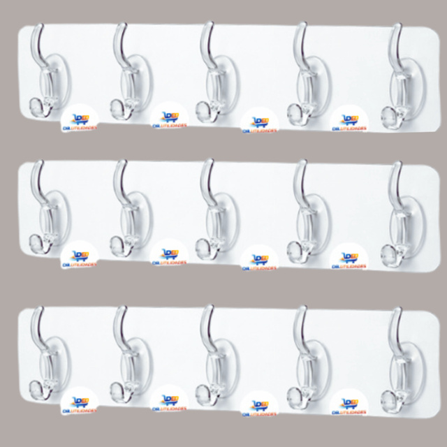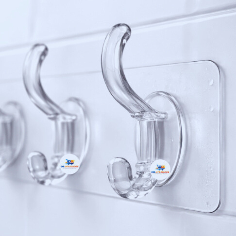 Kit Gancho Adesivo Transparente para Parede Sem Furos Conjunto com 05 ganchos – Suporta até 1kg