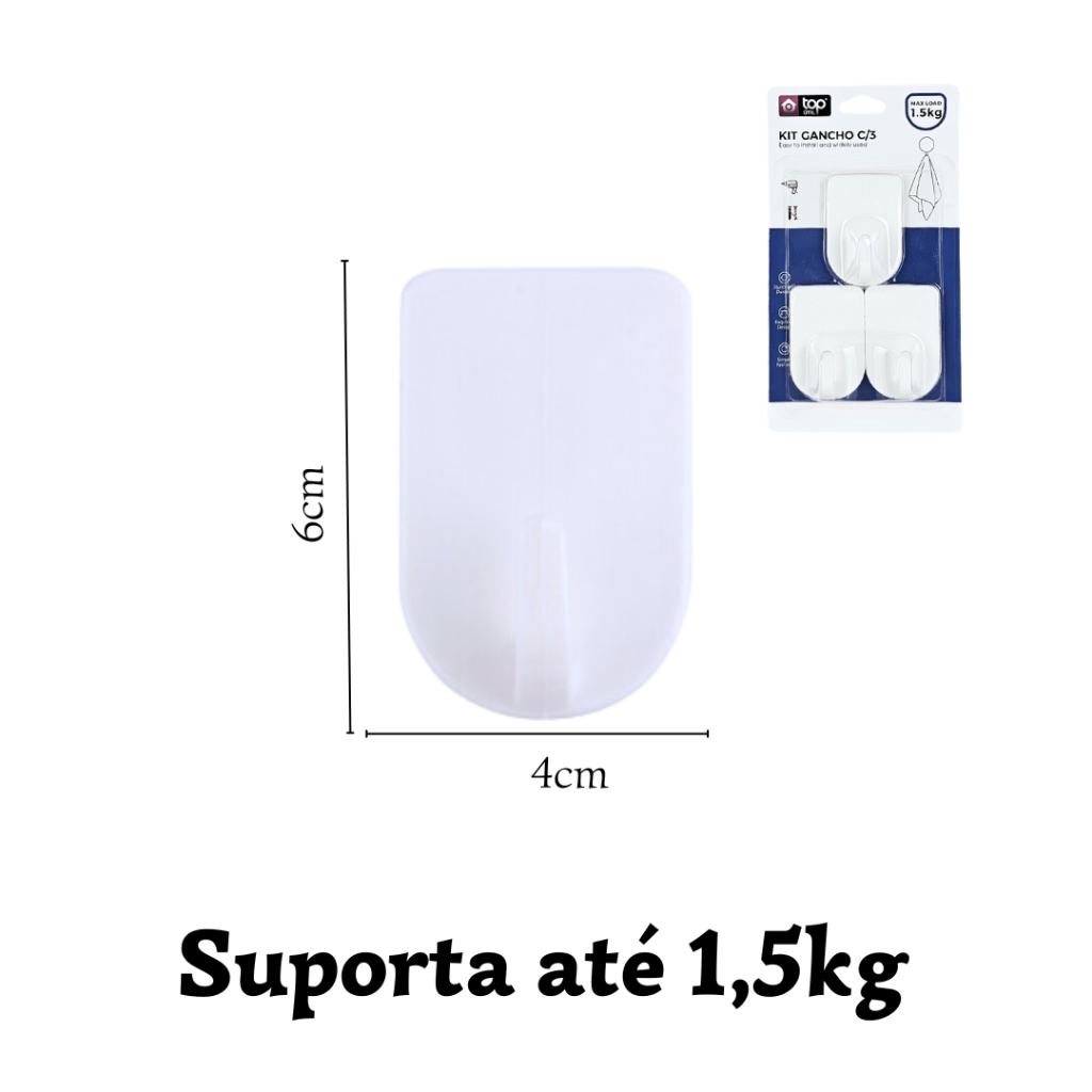 Evite furos nas suas paredes com esses ganchos, eles são multiuso e perfeitos para superfícies lisas de revestimentos como porcelanato, cerâmica e etc.. INFORMAÇÕES ADICIONAIS: - Capacidade Máxima: N/A - Cor: Branco - Contém: N/A - Composição: Plástico MIMI oferece as tendências mais recentes e inovadoras no universo da confeitaria e utilidades domésticas, sempre colocando em primeiro lugar a qualidade e a satisfação dos nossos clientes.