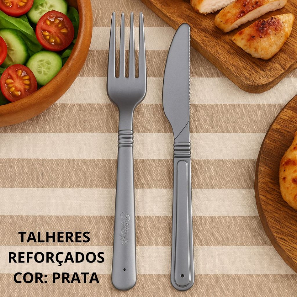 Kit Garfo Faca Refeição Forte Reforçado Descartável Prata Churrasco 100 200 300 400 500 Unidades