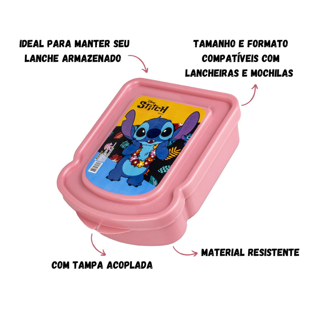 Kit Garrafa Squeeze 250ML + Lancheira Porta Lanche Stitch Escola Infantil