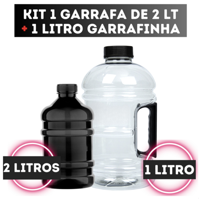 Kit Garrafas de Água 2 Litros + 1 Litro Garrafinha Academia p/Funcional Academia Cross Fit