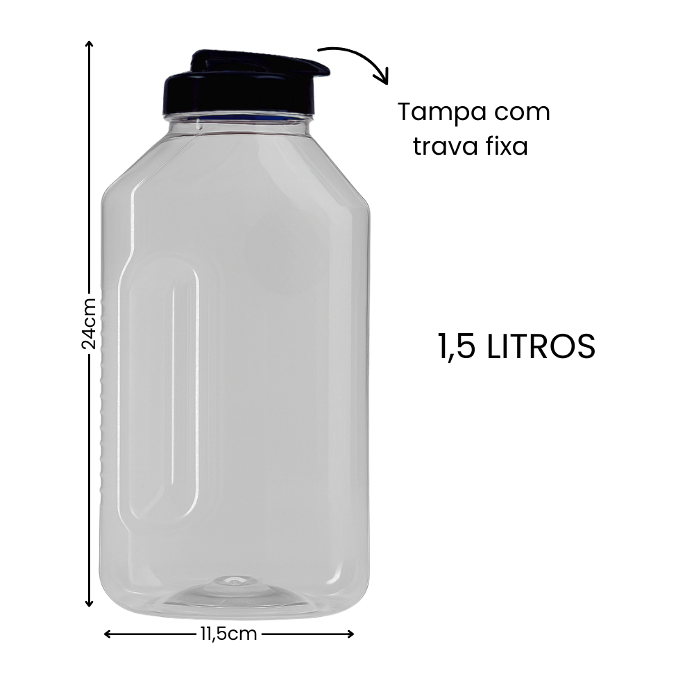 GARRAFA DE GELADEIRA ESMERALDA 1,5L - 3 UNIDADES Ideal para uso diário na geladeira a Garrafa Esmeralda foi desenvolvida para oferecer praticidade e segurança, ela possui tampa rosqueável com trava que evita vazamentos e mantém o líquido protegido. Seu design moderno conta com vãos ergonômicos na lateral, que proporcionam uma pegada firme e confortável, mesmo com as mãos molhadas. - Capacidade: 1,5 litros - Ideal para água, sucos e bebidas geladas - Tampa com trava de segurança - Design compacto que cabe na porta da geladeira - Transparente: facilite o controle do conteúdo Praticidade, conforto e funcionalidade em um único produto. FICHA TÉCNICA: - BPA FREE - Atóxico - Capacidade de 1,5L - Disponível em 4 cores - Modelo Compacto - Dimensões: (A) 24cm x (L) 11,5cm