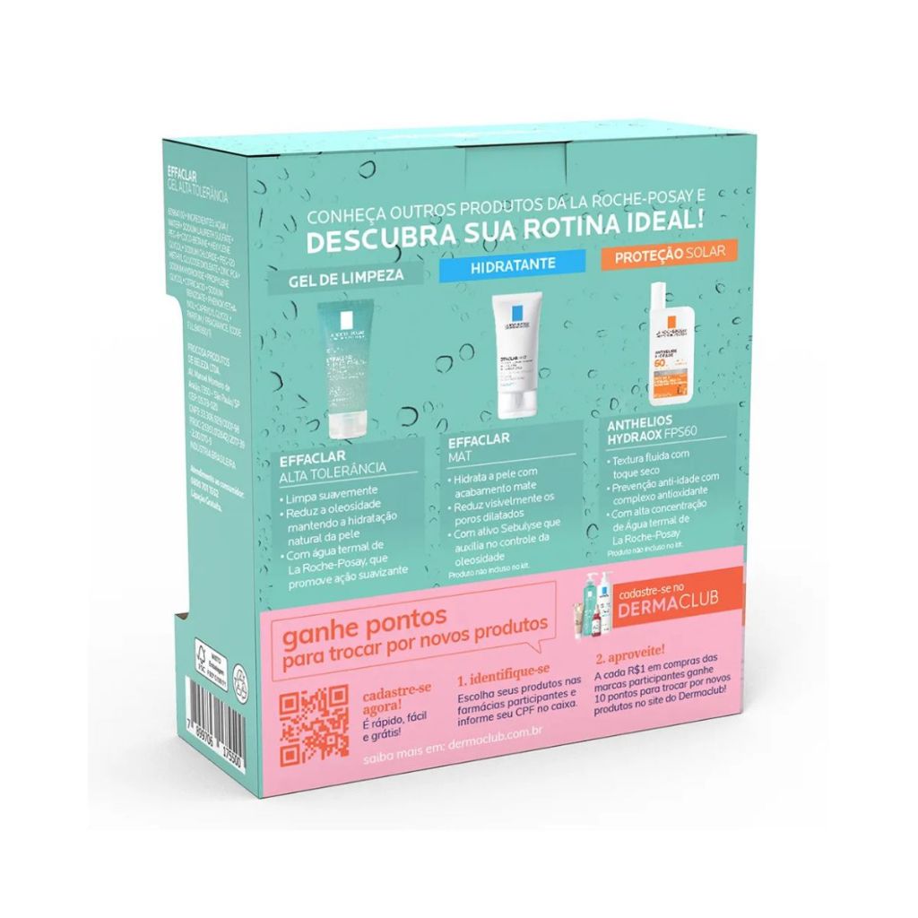 Kit Gel de Limpeza Facial La Roche-Posay Effaclar Alta Tolerância 150g + 40g O Kit Gel de Limpeza Facial La Roche-Posay Effaclar Alta Tolerância é ideal para uma rotina de cuidados com a pele sensível e oleosa. Desenvolvido com ingredientes de alta tolerância dermatológica, promove uma limpeza eficaz sem agredir a pele. Principais Características: - Fórmula Suave e Eficiente: Remove impurezas e o excesso de oleosidade sem ressecar a pele. - Alta Tolerância Dermatológica: Indicado para peles sensíveis e propensas à acne. - Textura Gel Refrescante: Proporciona sensação de frescor e limpeza duradoura. Benefícios: - Controla a oleosidade e reduz o brilho excessivo. - Limpa profundamente sem comprometer a barreira protetora da pele. - Ajuda a prevenir o surgimento de cravos e espinhas. Diferenciais do Produto: - Desenvolvido com a expertise da La Roche-Posay em cuidados dermatológicos. - Fórmula sem sabão e com pH fisiológico para minimizar riscos de irritação. - Adequado para o uso diário em peles sensíveis. Especificações Técnicas: - Peso: 150g (versão regular) + 40g (versão mini). Instruções de Uso: - Aplique o gel sobre a pele molhada. - Massageie suavemente até formar espuma. - Enxágue abundantemente com água. - Use diariamente, de manhã e à noite. Avisos e Precauções: - Evite o contato com os olhos. - Em caso de irritação, suspenda o uso e consulte um dermatologista. - Mantenha fora do alcance de crianças. O que está incluso? - 1 Gel de Limpeza Facial La Roche-Posay Effaclar Alta Tolerância 150g. - 1 Gel de Limpeza Facial La Roche-Posay Effaclar Alta Tolerância 40g. ---- Dúvidas Frequentes ---- Os produtos são originais? Sim. Todos os nossos produtos são originais. Emitem nota fiscal? Sim. Emitimos nota fiscal para todos os pedidos.