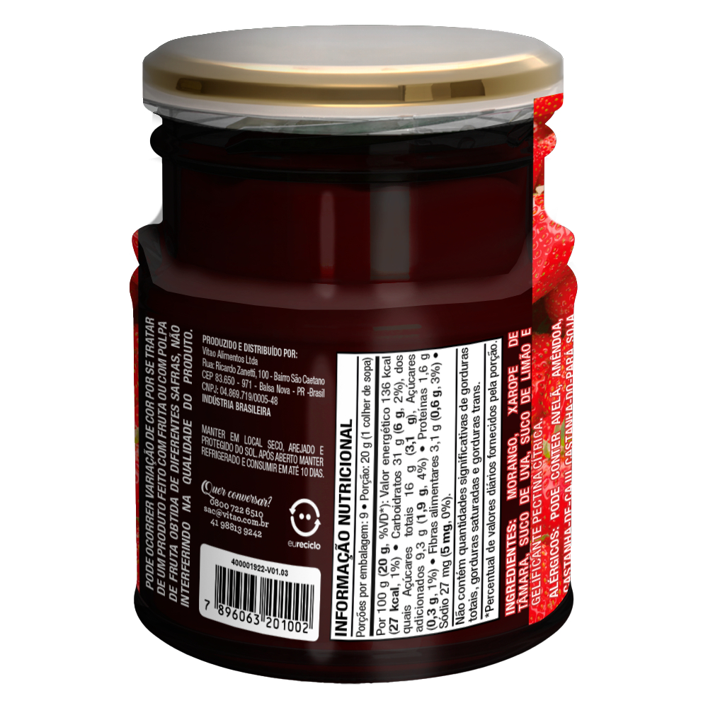 A Geleia Delakasa 100% Morango é feita com morangos frescos e de alta qualidade, garantindo o verdadeiro sabor da fruta. Adoçada com suco de tâmaras, essa geleia é perfeita para quem busca reduzir o consumo de açúcar, mantendo o prazer de saborear um produto delicioso e natural. Uma opção saudável e nutritiva para qualquer momento do dia. INGREDIENTES: Morango, xarope de tâmara, suco de uva, suco de limão e gelificante pectina cítrica. ALÉRGICOS: PODE CONTER AVELÃ, AMÊNDOA, CASTANHA-DE-CAJU, CASTANHA-DO-PARÁ, SOJA E AVEIA (SEM GLÚTEN). NÃO CONTÉM GLÚTEN. SEM GLÚTEN, 100% FRUTA.