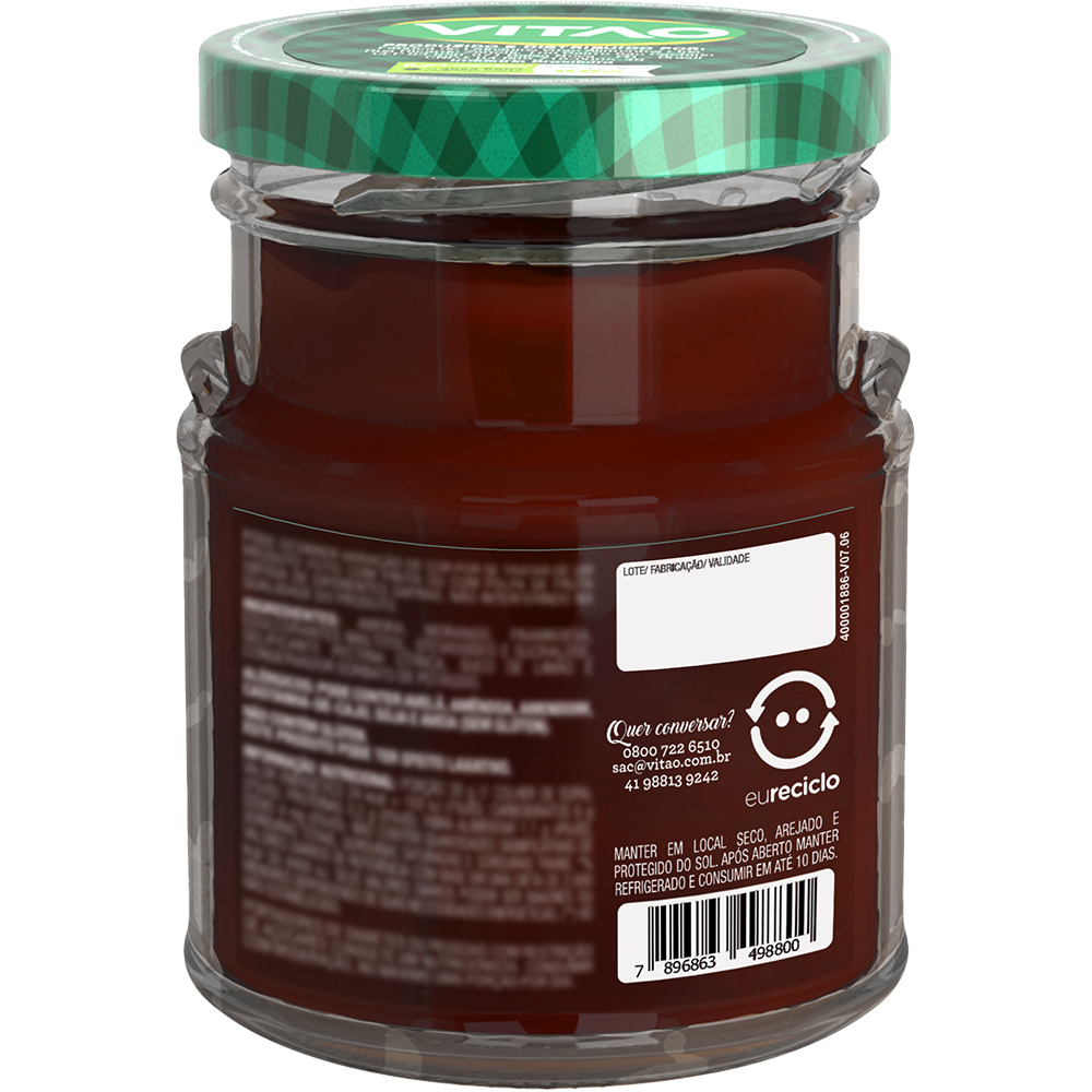 A geleia de frutas vermelhas sem adição de açúcares da Vitao foi especialmente desenvolvida para atender às necessidades do público que segue dietas restritivas de açúcar e glúten, assim como para aqueles que procuram manter um estilo de vida saudável com uma alimentação equilibrada, sem abrir mão do sabor. A geleia de frutas vermelhas pode ser apreciada pura, acompanhando pães, panquecas, torradas e outros alimentos, ou até mesmo utilizada como recheio em bolos, tortas e diversas sobremesas. Seu sabor delicioso e sua versatilidade a tornam uma opção perfeita para desfrutar de uma alternativa saudável e saborosa em qualquer momento. INGREDIENTES: Amora, morango, framboesa, suco de limão, edulcorantes maltitol, esteviosídeo e sucralose, gelificante pectina cítrica e conservador sorbato de potássio. ALERGÊNICOS: PODE CONTER AVELÃ, AMÊNDOA, AMENDOIM, CASTANHA-DE-CAJU, SOJA E AVEIA (SEM GLÚTEN). NÃO CONTÉM GLÚTEN. SEM GLÚTEN, ZERO ADIÇÃO DE AÇÚCARES.
