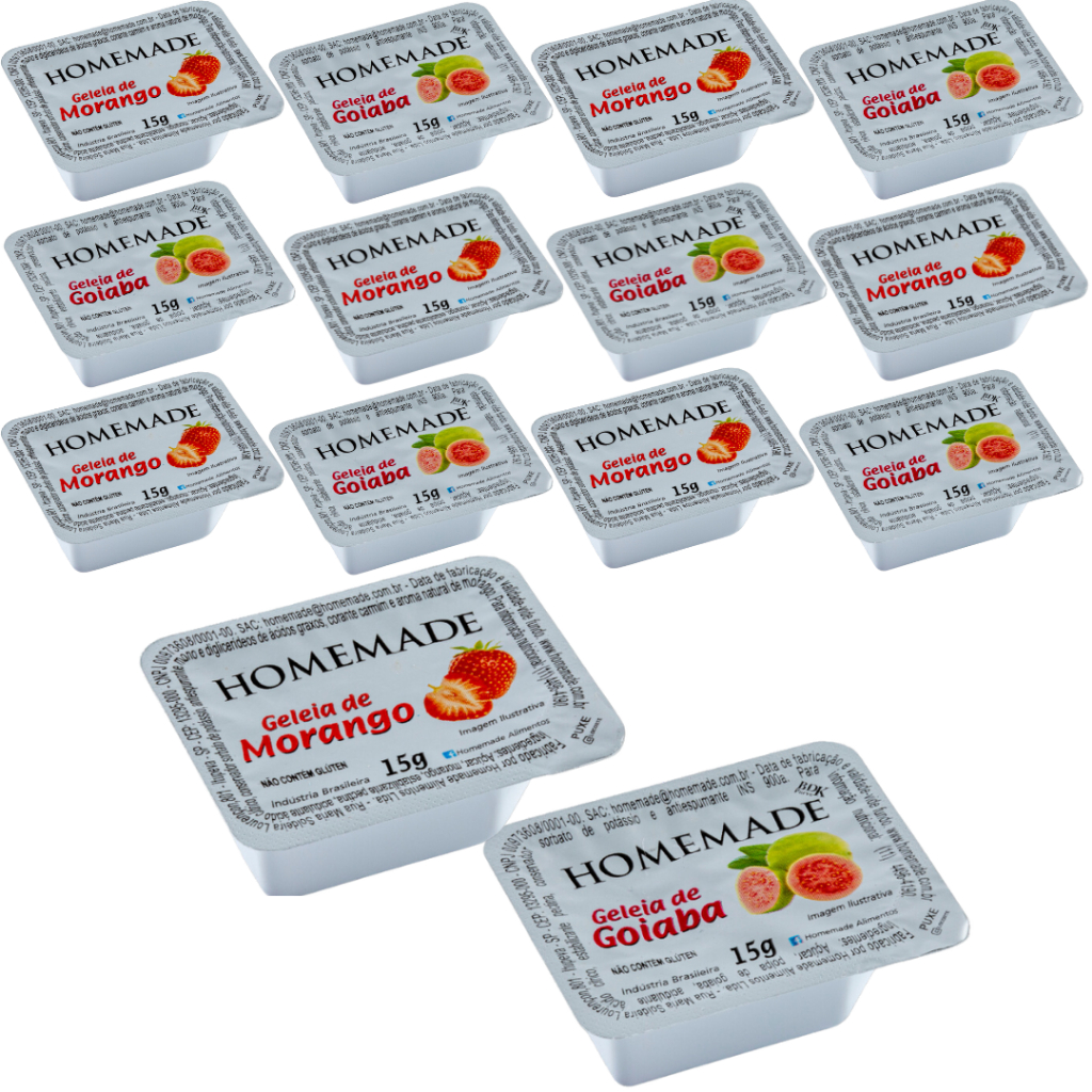 | Kit Geleia Homemade De Morango e Goiaba Em Sachê Blisters De 15g Pa... este produto | R$ 32,24 | 28% | 4.9/5 | 33 |