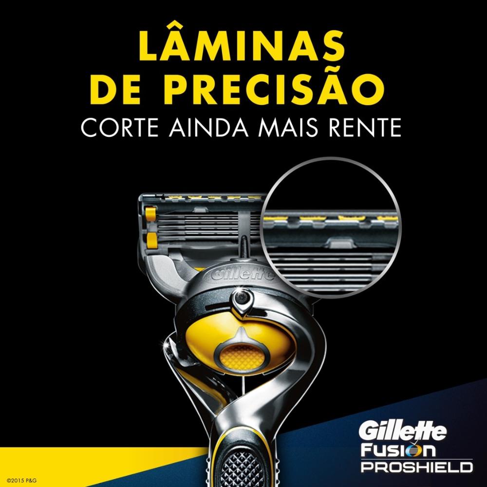 Deseja o barbear mais avançado da Gillette? Gillette Fusion Proshield oferece lubrificação antes e depois das lâminas para o proteger enquanto se barbeia. Além disso, a tecnologia Flexball se adapta aos contornos dos rostos para um barbear mais completo. Lubrificação antes e depois das lâminas; Flexball adapta-se aos contornos do rosto para um barbear mais completo; Lâmina de precisão na parte posterior para obter linhas bem definidas; Todas as recargas Fusion podem ser utilizadas com qualquer máquina de barbear Fusion. Sensação refrescante durante o barbear.