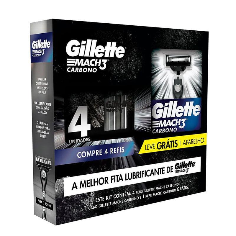 Kit Gillette Mach3 Carbono 4 Refis + 1 Aparelho Gillette Mach3 Carbono