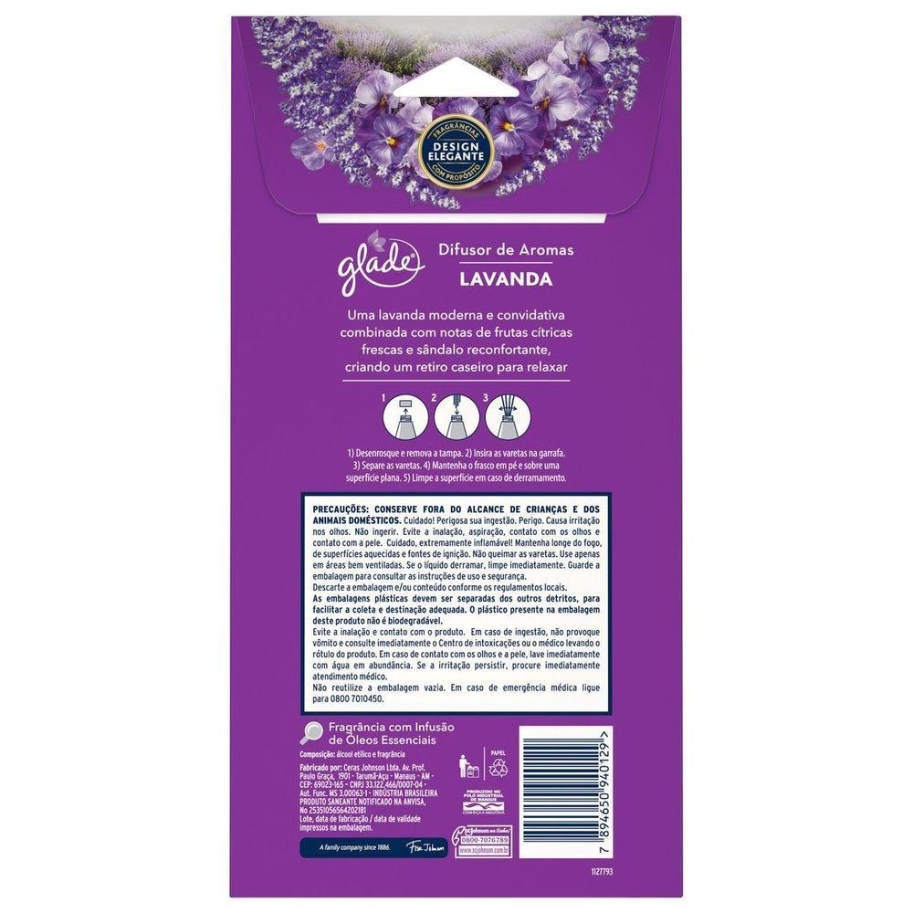 O Kit contém: - 1 Aparelho Odorizador de Ambiente Glade Toque de Frescor + Refil Lavanda 12ml; - 1 Difusor de Ambiente Glade Lavanda 100ml; Glade Toque de Frescor garante uma fragrância extra de frescor instantâneo sempre que você precisar. Basta pressionar para ativar o spray silencioso e delicado, e perfumar seu banheiro com fragrância. Seu tamanho discreto e fórmula concentrada ajudam a garantir que o ambiente do seu banheiro esteja sempre agradável, proporcionando mais confiança em apenas um toque. Glade Difusor é perfeito para enriquecer os momentos de autocuidado, mantendo sua casa perfumada por até 45 dias. Seu frasco de design moderno e elegante e suas varetas feitas com madeira de reflorestamento combinam com diversos estilos para transformar a casa em um verdadeiro santuário.