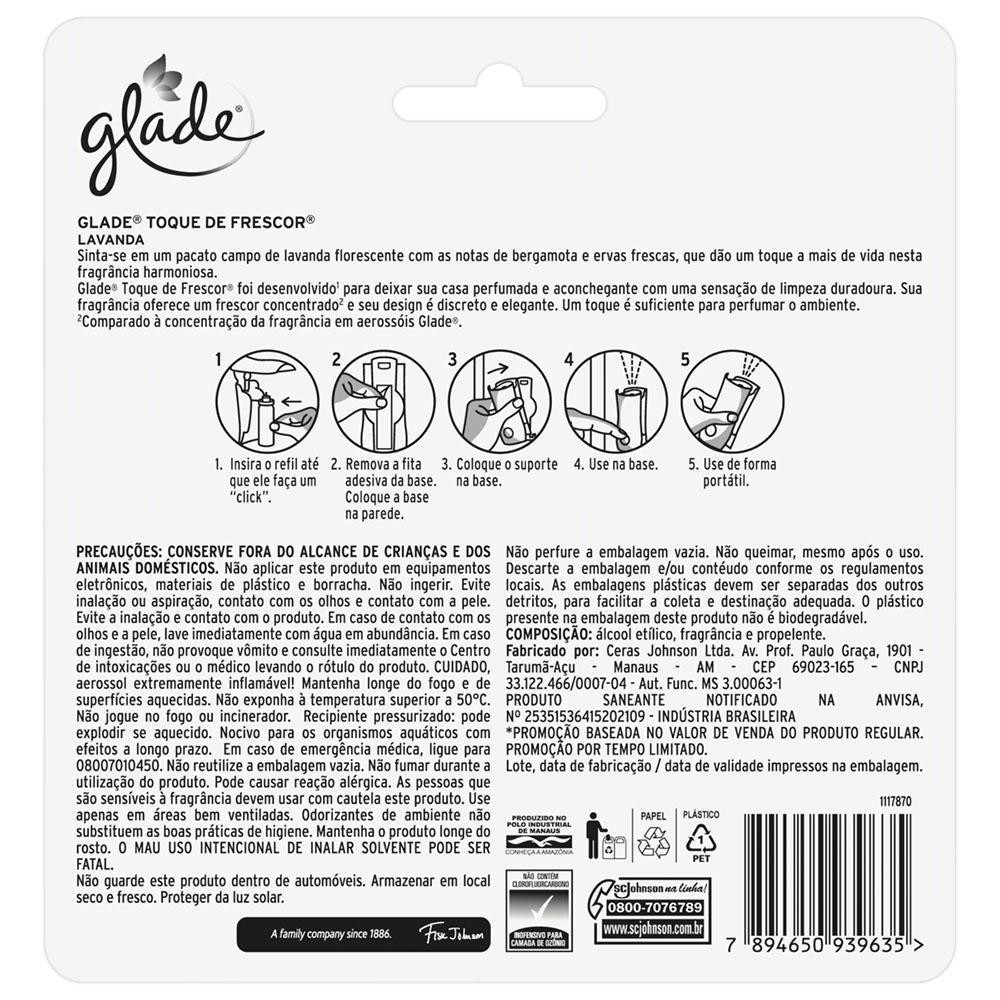 | Kit Glade Odorizador Toque de Frescor Aparelho + 3 Refis Lavanda 12... este produto | R$ 76,09 | — | 5.0/5 | — |