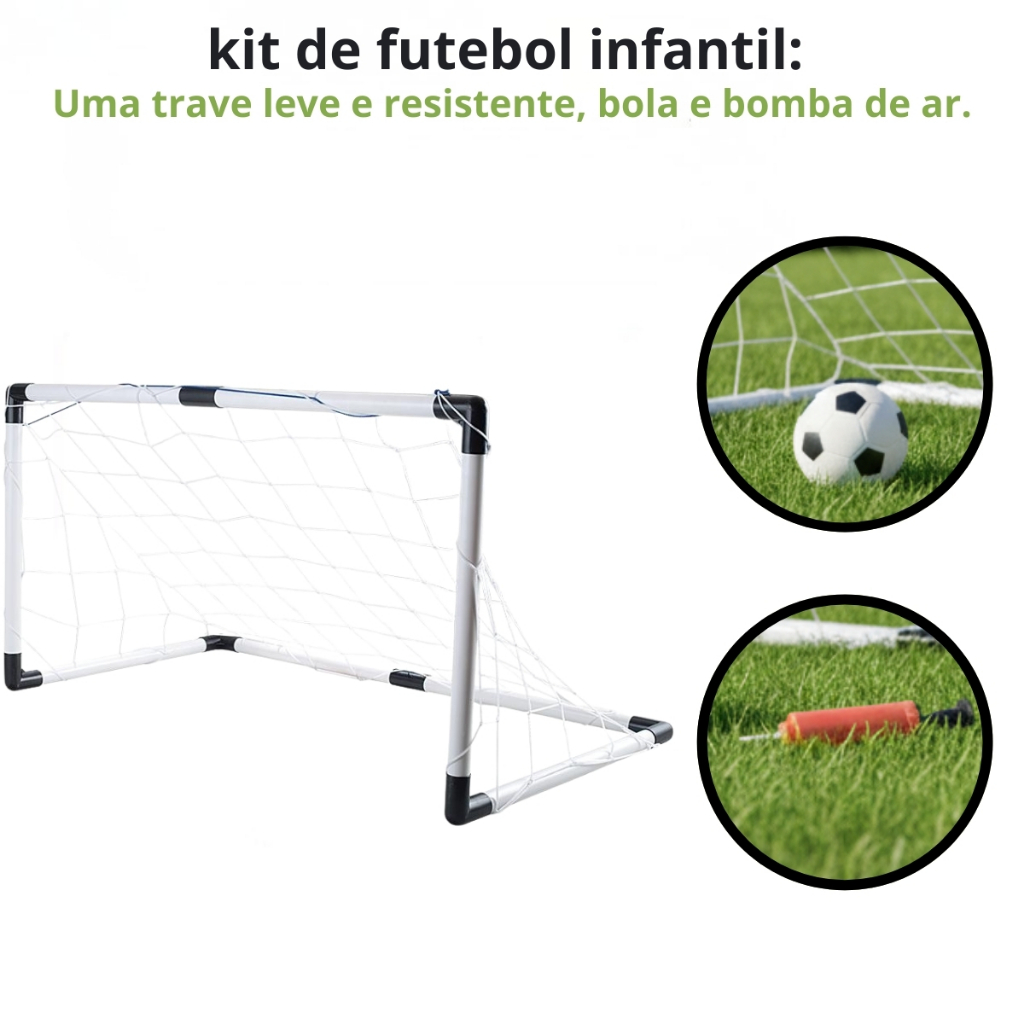 Kit Golzinho Futebol Infantil Rede Dobrável Com Bola e Bombinha Brinquedo Esportivo