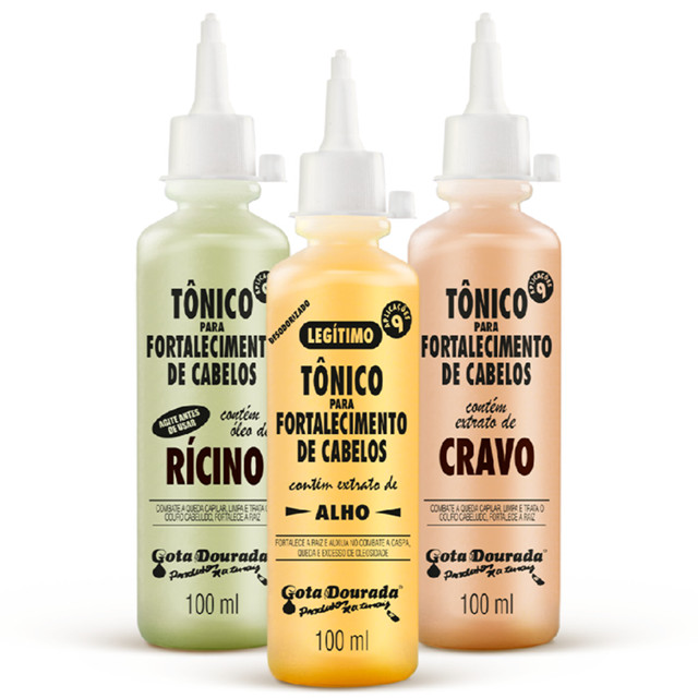 | Kit Gota Dourada 3 Tônicos Tratamento Fortalecedor Raiz Alho Cravo ... este produto | R$ 42,90 | 2% | 4.9/5 | 5 |