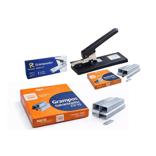 Kit Grampeador Profissional 100 Folhas + 1000 Grampos 23/10