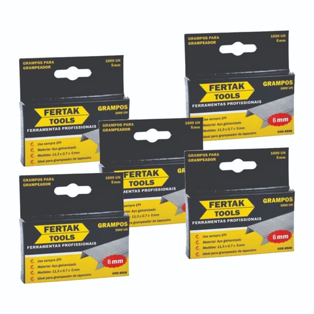 | Kit Grampos para Grampeadores 6mm 5000 mil unidades Fertak este produto | R$ 15,30 | — | 4.6/5 | — |
