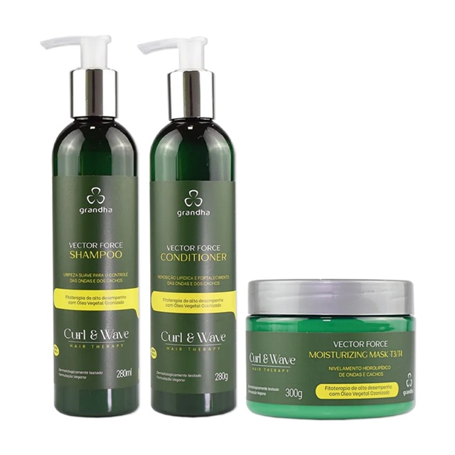 Kit Grandha Curl & Wave Vector Force Shampoo 280ml + Conditioner 280g + Moisturizing Mask T3/T4 300g
