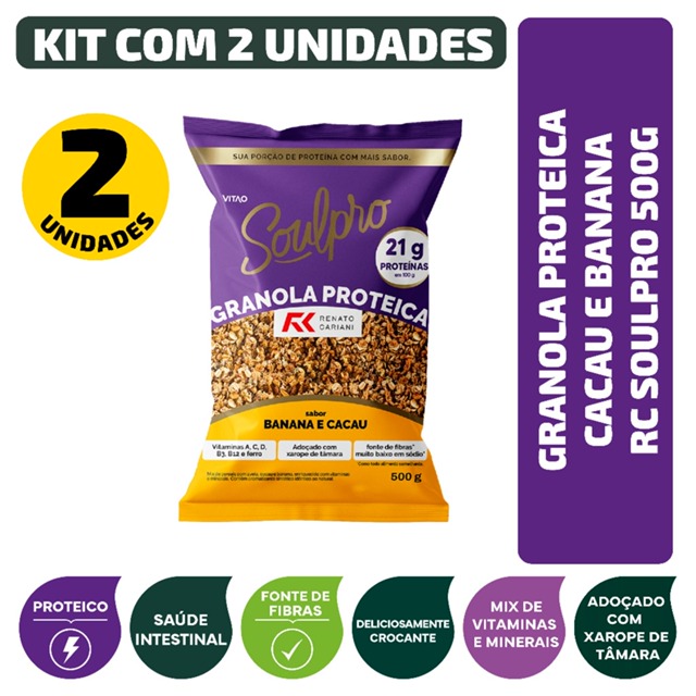 | Kit Granola Proteica Cacau E Banana RC Soulpro 500G - 2 Unidades este produto | R$ 67,42 | 25% | 4.9/5 | 14 |