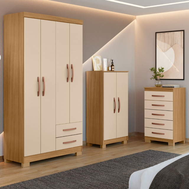 | Kit Guarda Roupa Solteiro 4 Portas com Multiuso e Cômoda 5 Gavetas ... este produto | R$ 987,56 | 14% | 4.3/5 | 2 |