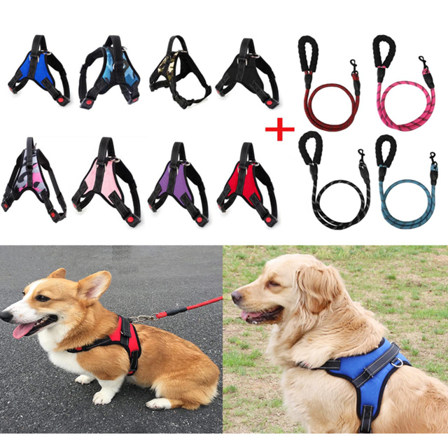 Kit Guia De Corda Reforçada+Peitoral Coleira Com Regulagem Dupla Trava De Segurança Para Pet Cachorro LR-0072 + LR-0134