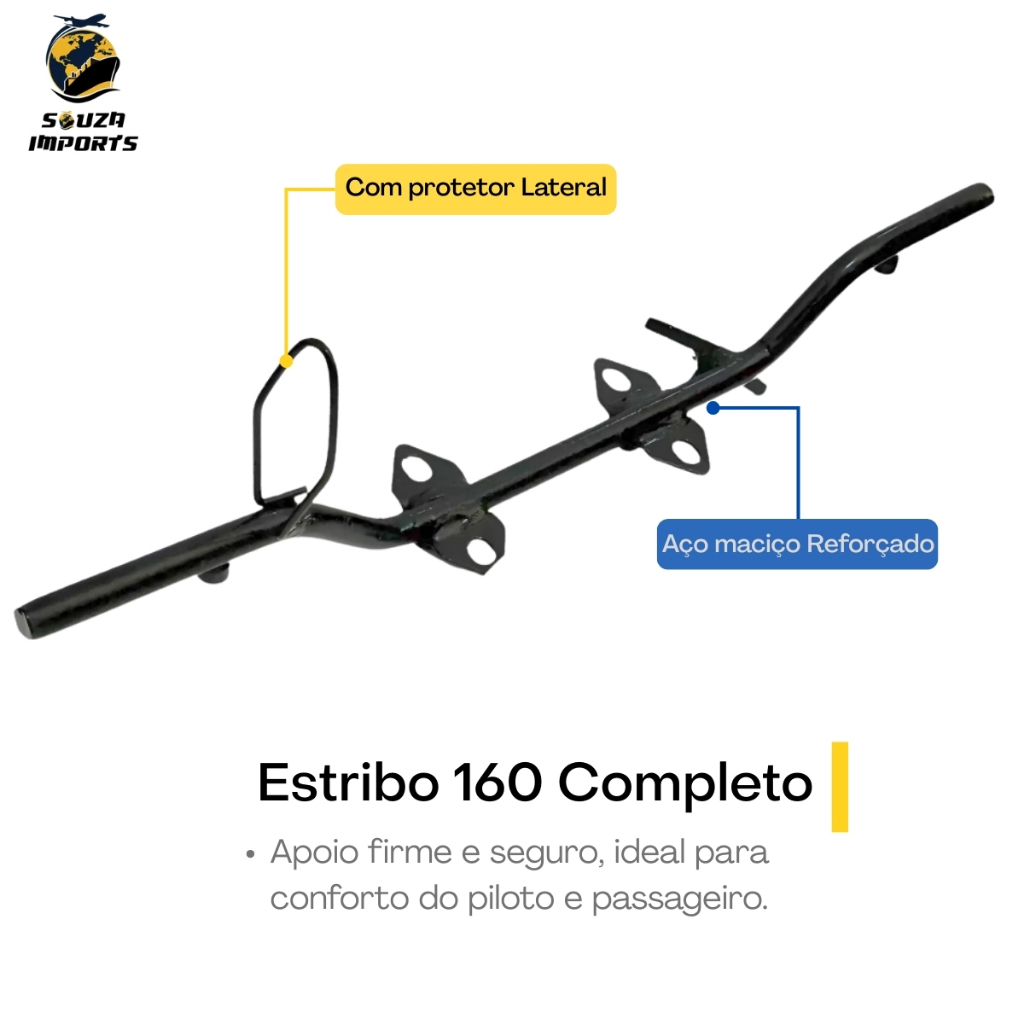 Kit Completo Moto Honda – Guidão Cargo 160 + Peso de Guidão + Estribo 160 + Borrachas + Manopla ixe sua moto com mais conforto, estilo e segurança com este kit completo pensado para quem valoriza qualidade, resistência e um visual moderno! Descrição do Produto: - O Kit Guidão Cargo 160 + Peso de Guidão + Estribo 160 + Borrachas + Manopla reúne tudo o que você precisa para renovar o visual da sua moto e garantir uma pilotagem estável e confortável. Cada peça foi desenvolvida com materiais de alta durabilidade e acabamento impecável, ideal para uso diário ou personalização. Itens inclusos: - Guidão Cargo 160 – design robusto, confortável e ergonômico; - Pesos de Guidão – reduzem vibrações e aumentam a estabilidade; - Estribo 160 completo – firme, seguro e com ótimo apoio para os pés; - Borrachas de apoio – antiderrapantes, resistentes e de fácil instalação; - Manoplas esportivas – toque macio, excelente aderência e conforto durante a pilotagem. ⚙️ Benefícios: - Fácil instalação, sem necessidade de adaptações; - Alta resistência e longa durabilidade; - Compatível com motos Honda 150/160 (Titan, Fan, Start, Cargo); - Mais conforto e controle ao pilotar; - Visual moderno e personalizado para sua moto. - Tudo o que sua moto precisa em um só kit! Ideal para quem busca qualidade, segurança e estilo, seja para reposição ou personalização completa.