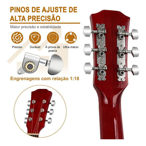 Tem receio de comprar um violão de madeira e não encontrar o microfone adequado? Este violão elétrico de madeira da Brave Bull atende a todas as suas necessidades. Equipado com um sistema de equalização de 4 bandas (graves, médios, agudos e presença) e sistema de captação integrado, permite amplificar o som e adicionar efeitos, sendo ideal para tocar com banda completa, em apresentações acústicas ou no palco. KIT COMPLETO DE VIOLÃO ACÚSTICO DE 38 POLEGADAS: Este kit de violão acústico de 38 polegadas oferece excelente custo-benefício e é a melhor escolha para iniciantes. Inclui a maioria dos acessórios necessários: violão de tamanho normal com cordas de aço, afinador, estojo, flanela, palhetas, alça, cordas sobressalentes, protetor de palheta, suporte para violão, capa acolchoada, cabo P10 e manual de instruções. Pronto para uso, permite que você inicie sua jornada musical sem a necessidade de comprar outros acessórios, economizando tempo e dinheiro. EQUALIZADOR E SISTEMA DE CAPTAÇÃO INTEGRADOS: O violão Brave Bull conta com um equalizador de 4 bandas (graves, médios, agudos e presença), que possibilita ajustar o timbre conforme sua preferência. Além disso, possui um sistema de captação embutido, ideal para amplificar o som ao conectar em um amplificador. Perfeito para tocar em banda, em estúdio de gravação ou em festas, também atende a apresentações ao vivo e momentos acústicos. CORDAS DE COBRE DE FÁCIL AFINAÇÃO: O tampo do violão Brave Bull é equipado com cordas de aço de alta qualidade, tarraxas metálicas estáveis e trastes de alta durabilidade, garantindo afinação fácil e prolongada. Isso evita problemas comuns de desafinação e proporciona mais tempo para tocar. Simplicidade, estabilidade, som encantador e design atraente são fatores que aumentam o interesse pelo aprendizado. O violão Brave Bull oferece um início adequado e motivador para iniciantes! SUPORTE E BOLSA DE QUALIDADE: A bolsa inclusa é perfeita para proteger e transportar o instrumento (tamanhos 38/40/41 polegadas). Pode ser levada na mão ou nos ombros, com alça acolchoada para reduzir a pressão. Dois bolsos externos permitem armazenar acessórios. O suporte para violão também acompanha o kit, permitindo pendurar o instrumento com segurança. O PRESENTE PERFEITO: O kit de violão elétrico acústico Brave Bull é ideal para iniciantes de todas as idades – crianças, jovens, adultos e idosos. Perfeito para aprendizado autodidata ou como presente de aniversário, Natal, Ação de Graças, Dia das Crianças, formatura ou inauguração de casa! ESPECIFICAÇÕES TÉCNICAS: Tamanho: 38 polegadas, 6 cordas Corpo: Tília Escala: Bétula Tarraxas: Cromadas, seladas Cordas: Metal com revestimento de cobre Controle de presença: 12 dB a 8 kHz Controle de graves: 12 dB a 600 Hz Controle de médios: 12 dB a 600 Hz Controle de agudos: 12 dB a 2,2 kHz Resposta de frequência: 20 Hz – 20 kHz ACESSÓRIOS INCLUSOS: 1x Violão de 38 polegadas 1x Afinador 1x Estojo para violão 1x Suporte para violão 1x Alça 4x Palhetas 6x Cavaletes fixos 1x Capotraste 1x Flanela 1x Jogo de cordas sobressalentes (metal) 1x Tarraxa 1x Manual de instruções 1x Cabo P10 de 6,35 mm