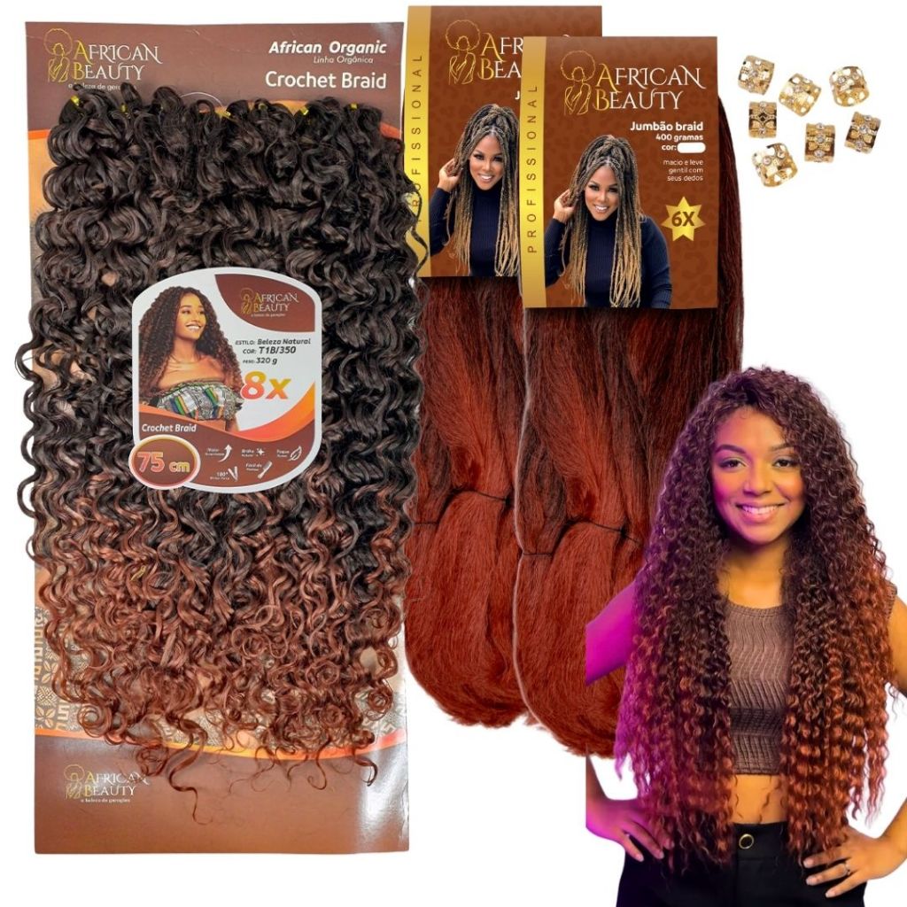 Kit Gypsy Braid Cabelo Crochet Orgânico 75cm 320g Cacheado e 2 Jumbo 400g Fibra Sintética Premium Para Tranças Afro