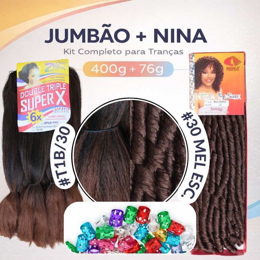 | Kit Gypsy Tranças Afro 2 Jumbão 400g + 1 Nina 76g Softex Braids este produto | R$ 69,99 | — | 4.9/5 | 10 |