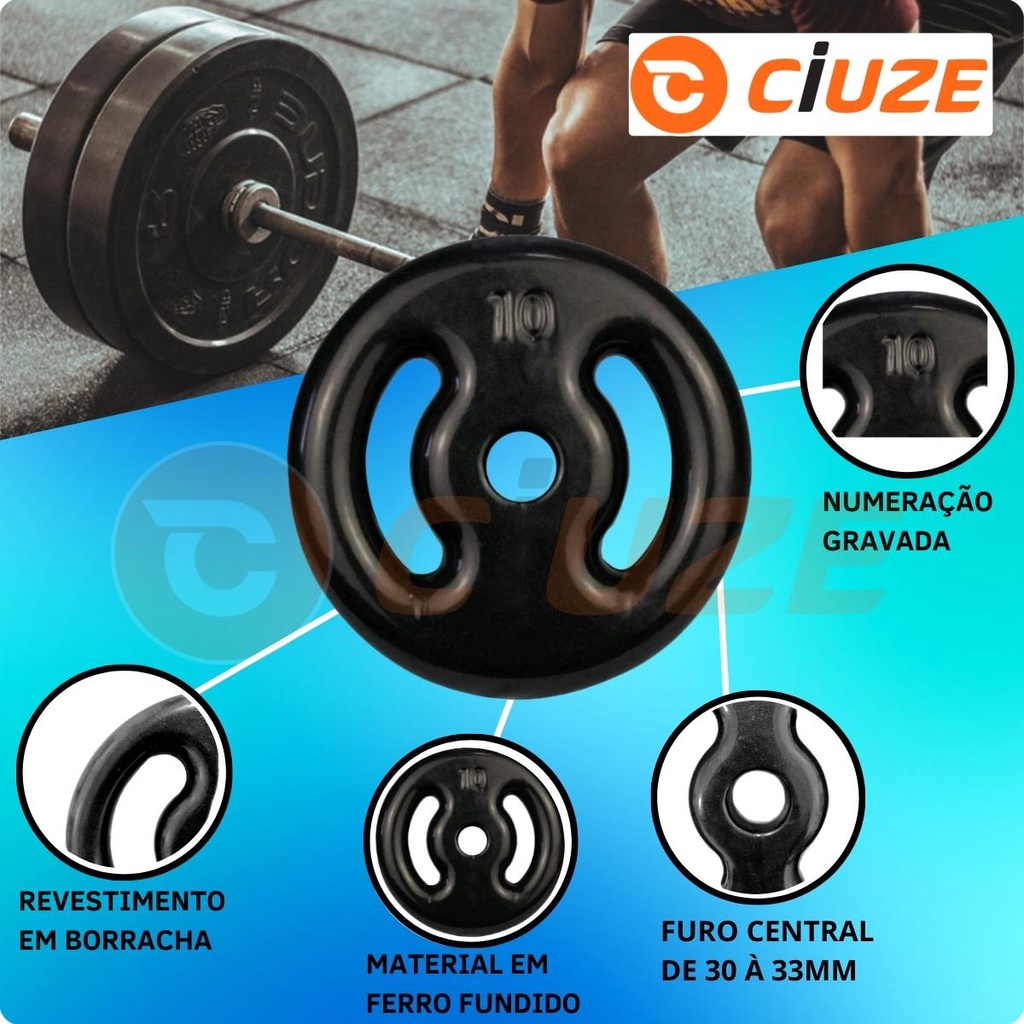 Kit Halteres de Anilhas Emborrachadas e Barras Fitness - 18 Peças