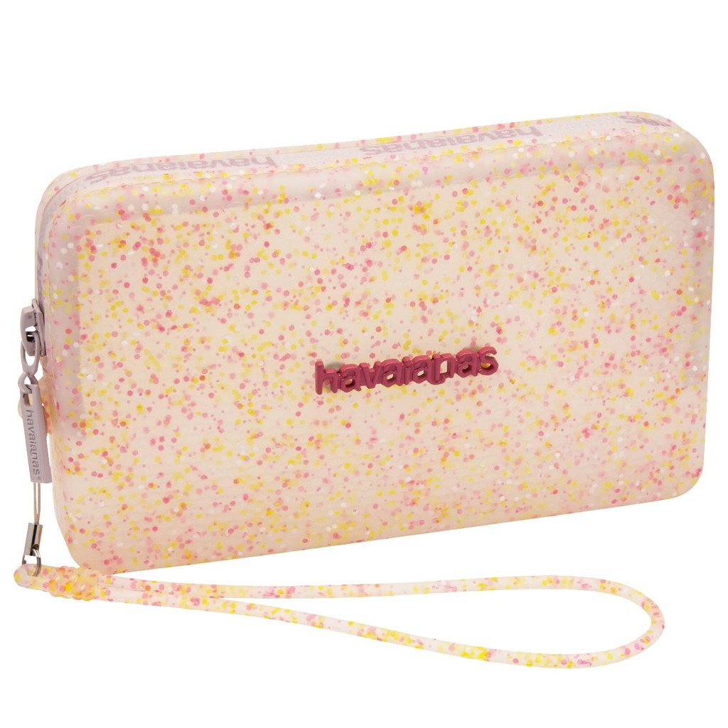 Kit Havaianas Slim Point Glitter + Mini Bag Super Glitter: brilho e estilo em dose dupla! Chinelo com sola pontuda e contorno em glitter + bolsa transparente com partículas coloridas. Tendência, conforto e praticidade para você arrasar!