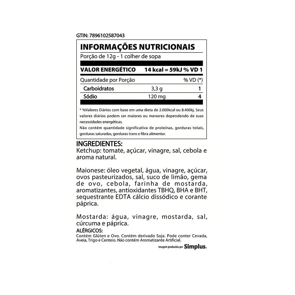ATENÇÃO AOS APAIXONADOS POR HAMBÚRGUERES: a Heinz criou o kit PERFEITO para todos vocês. Nenhum lanche ou porção vai ficar sem sabor com esse pack: Ketchup Heinz 397g, Maionese Heinz 215g e Mostarda Heinz 255g, ambos na versão original. Todos os produtos são feitos com ingredientes de qualidade e cuidadosamente selecionados, o que é tradição nos produtos da Heinz. Você não vai deixar esse kit delicioso fora do seu carrinho, né? Ingredientes dos Itens do Kit: Ketchup Heinz: Tomate, açúcar, vinagre, sal, cebola e aroma natural. NÃO CONTÉM GLÚTEN. Maionese Heinz: Óleo vegetal, água, vinagre, açúcar, ovos pasteurizados, sal, suco de limão, gema de ovo, cebola, farinha de mostarda, aromatizantes, antioxidantes TBHQ, BHA e BHT, sequestrante E.D.T.A. cálcio dissódico e corante páprica. NÃO CONTÉM GLÚTEN. ALÉRGICOS: CONTÉM OVOS E DERIVADOS DE SOJA. Mostarda Heinz: Água, vinagre, mostarda, sal e corantes naturais cúrcuma e páprica. CONTÉM GLÚTEN. ALÉRGICOS: PODE CONTER TRIGO, CENTEIO, CEVADA, AVEIA. "Fazer uma coisa comum extraordinariamente bem traz o sucesso" a frase célebre do nosso fundador, Henry J. Heinz, reflete bem o que buscamos com os nossos produtos. Heinz está presente em mais de 200 paises e desde 1869 faz o que há de melhor em alimentos a partir de ingredientes de qualidade. Ninguém faz melhor que Heinz!